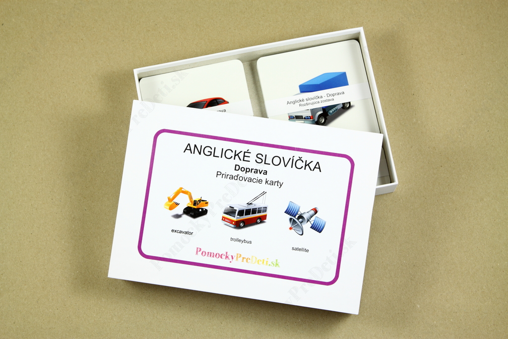 Učebná pomôcka Anglické slovíčka – Doprava (priraďovacie karty) je určená deťom mladšieho a staršieho školského veku. Prostredníctvom obrázkových a textových kariet si deti zábavným spôsobom rozvíjajú a upevňujú základnú slovnú zásobu v anglickom jazyku.