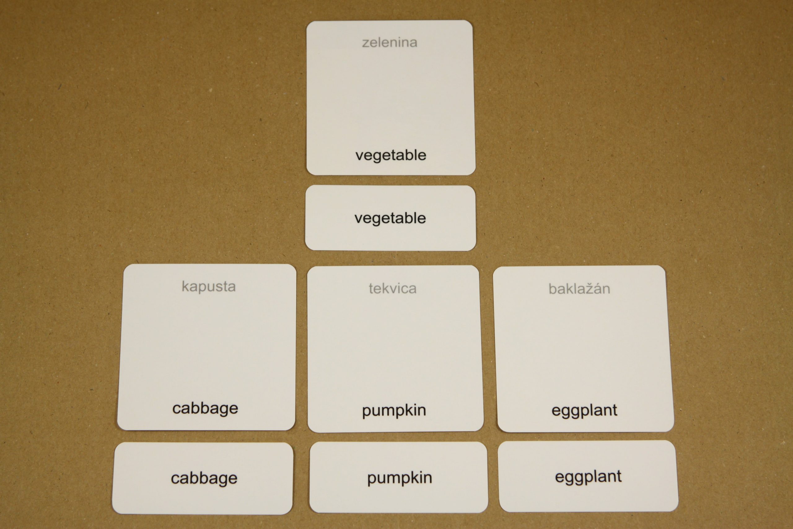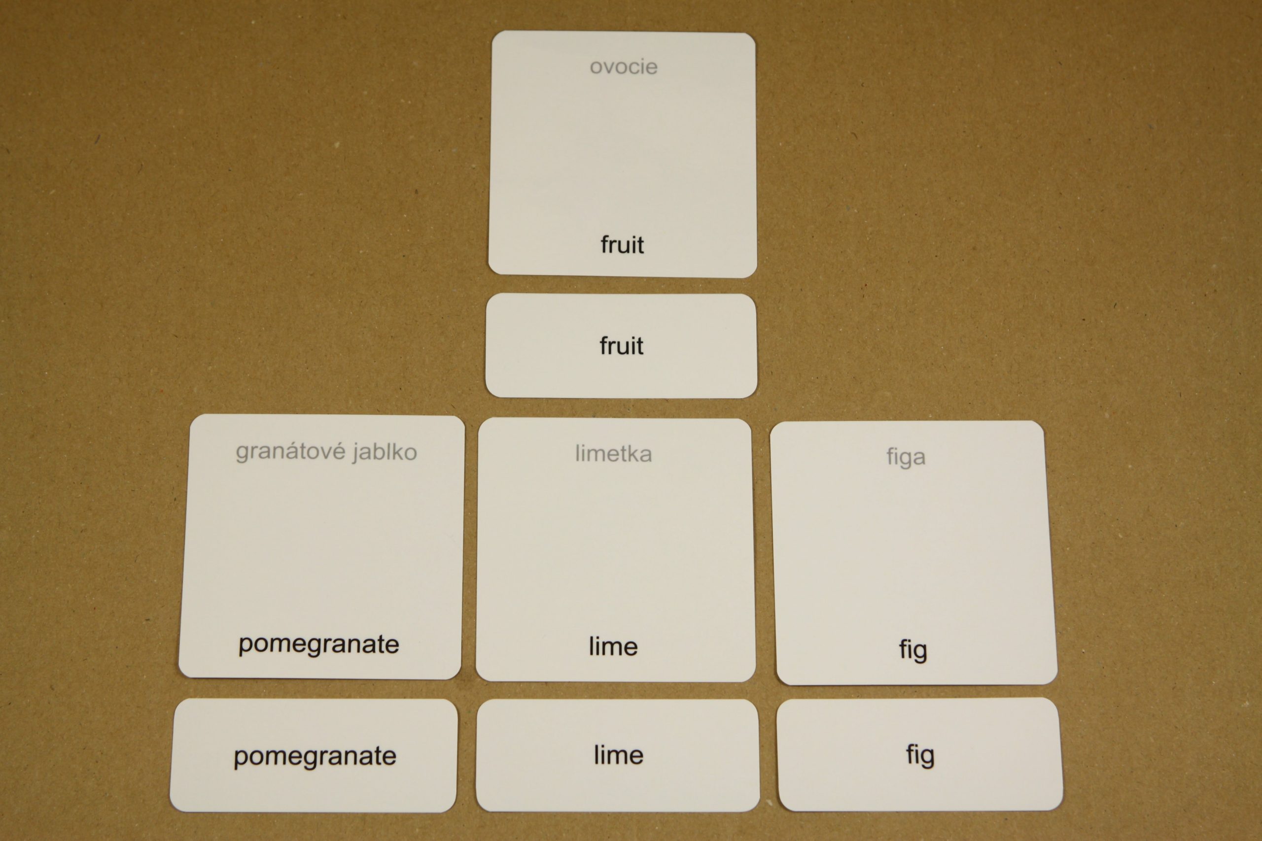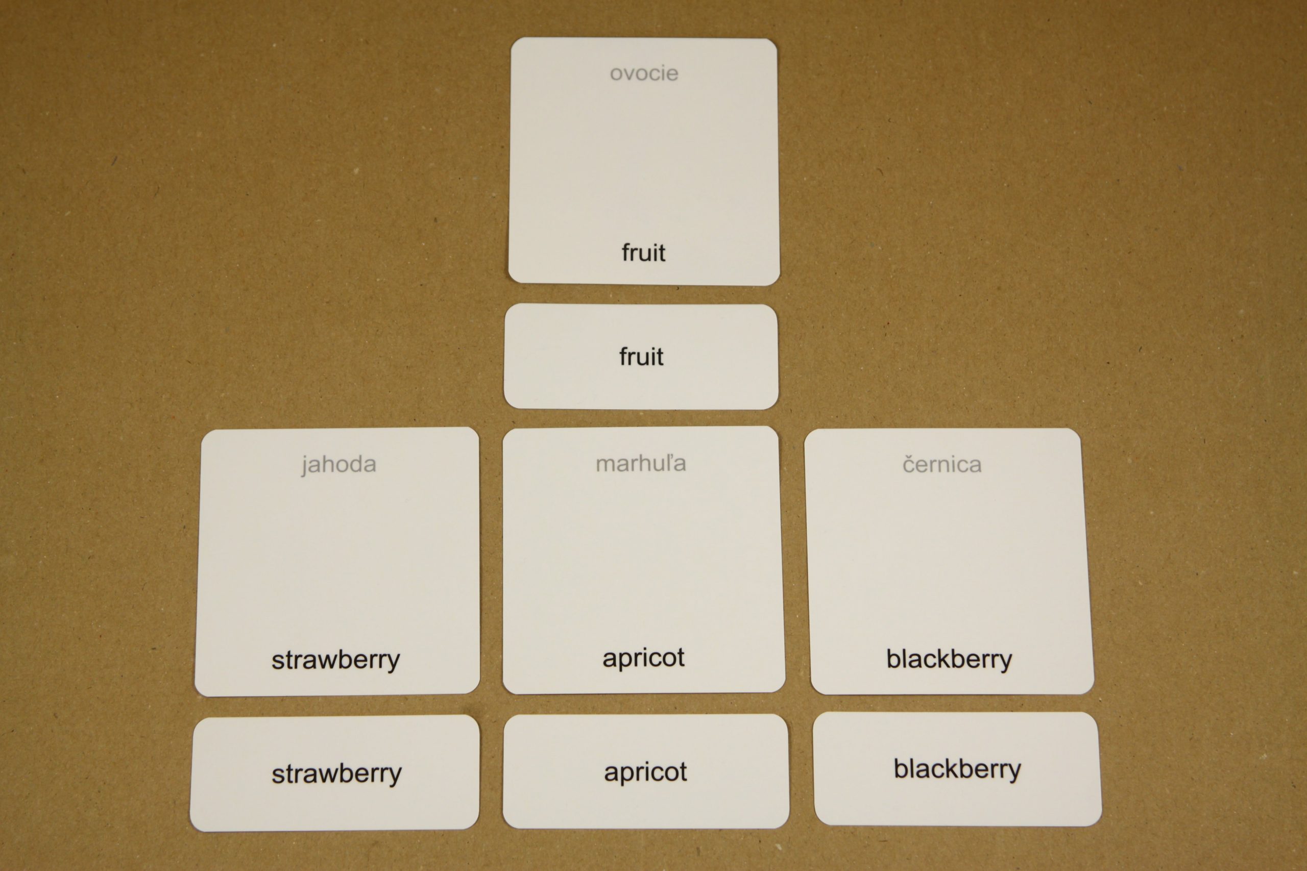 Úlohou detí je prikladať k základným kartám s obrázkom malé karty s textom. Po otočení základnej karty si môžu samy skontrolovať správnosť riešenia. Na rubovej strane základnej karty je anglický výraz aj jeho slovenský ekvivalent.