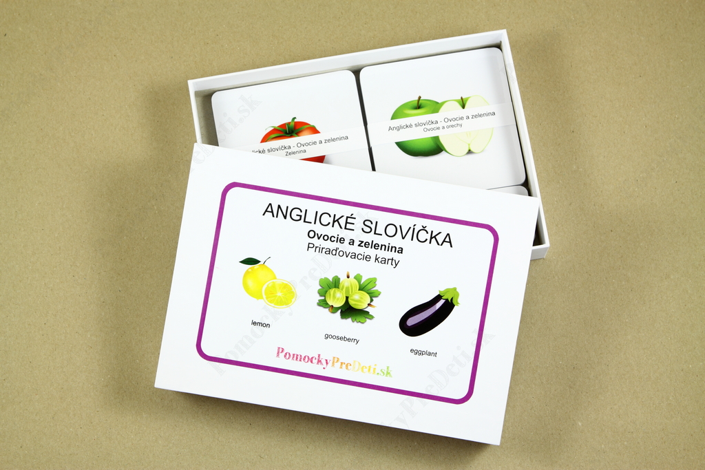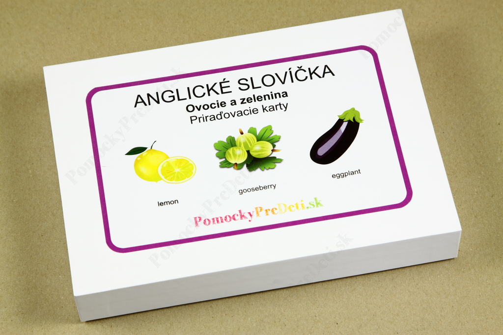 Učebná pomôcka Anglické slovíčka – Ovocie a zelenina (priraďovacie karty) je určená deťom mladšieho a staršieho školského veku. Prostredníctvom obrázkových a textových kariet si deti zábavným spôsobom rozvíjajú a upevňujú základnú slovnú zásobu v anglickom jazyku.