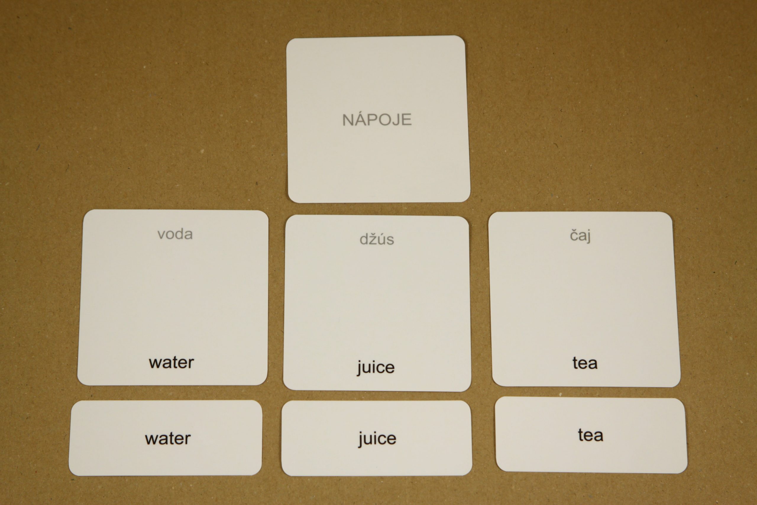 22 malých kariet s textom - tematický okruh Nápoje