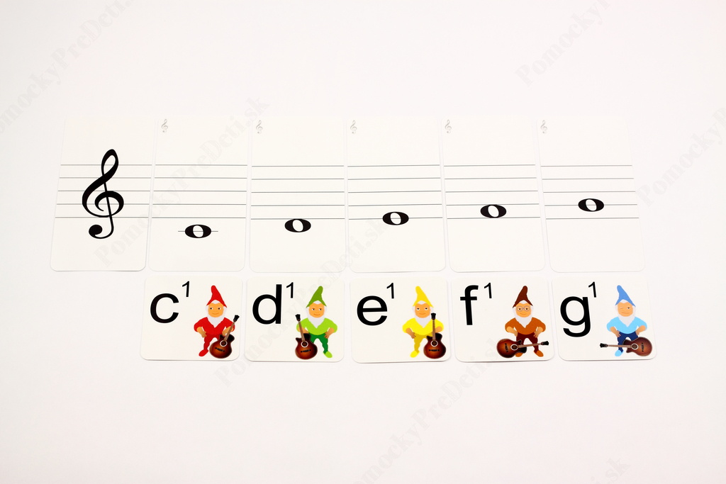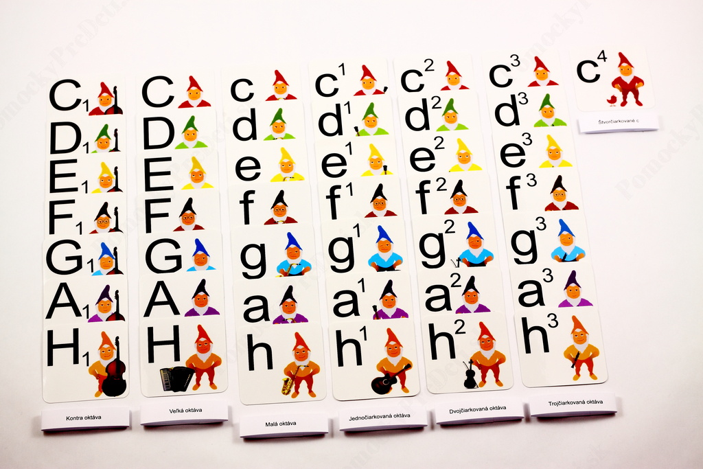 - 43 kariet s postavou trpaslíka a s názvom noty