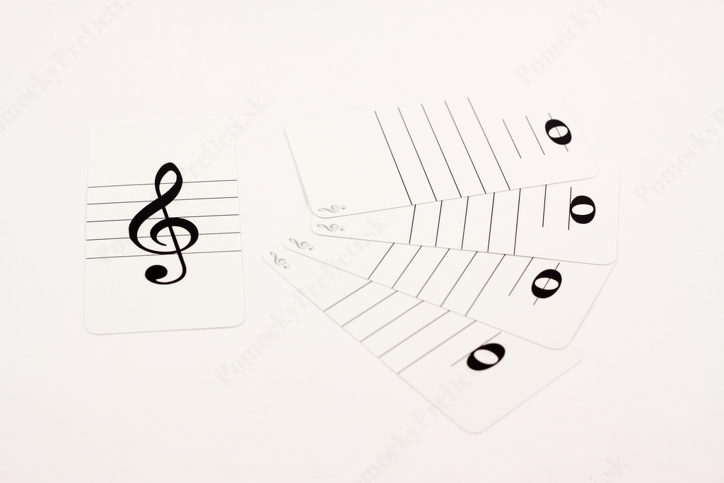 - 2 podlhovasté karty s husľovým kľúčom