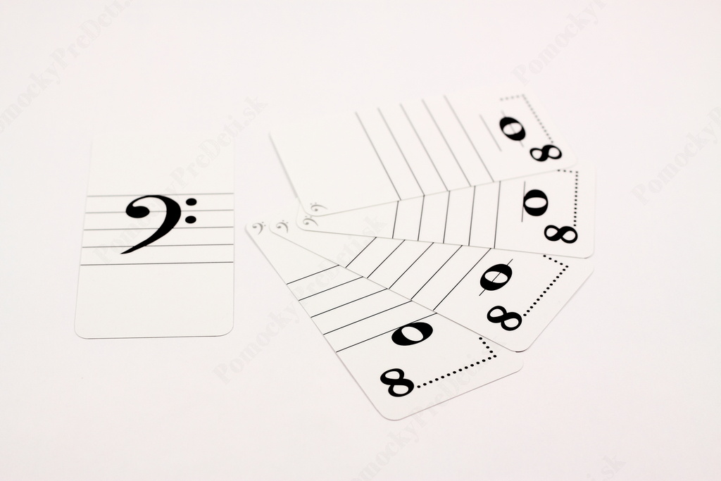 - 2 podlhovasté karty s basovým kľúčom