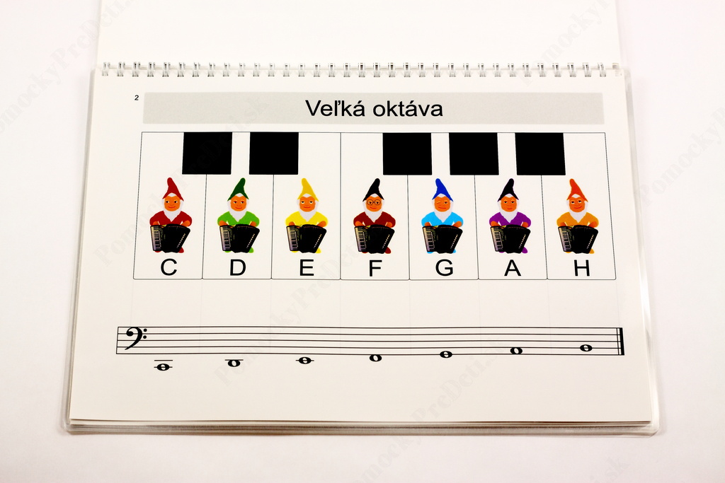 - prehľad oktáv v podobe 17-stranovej učebnice formátu A4 (kontra oktáva, veľká oktáva, malá oktáva, jednočiarková oktáva, dvojčiarková oktáva, trojčiarková oktáva, štvorčiarkové c)