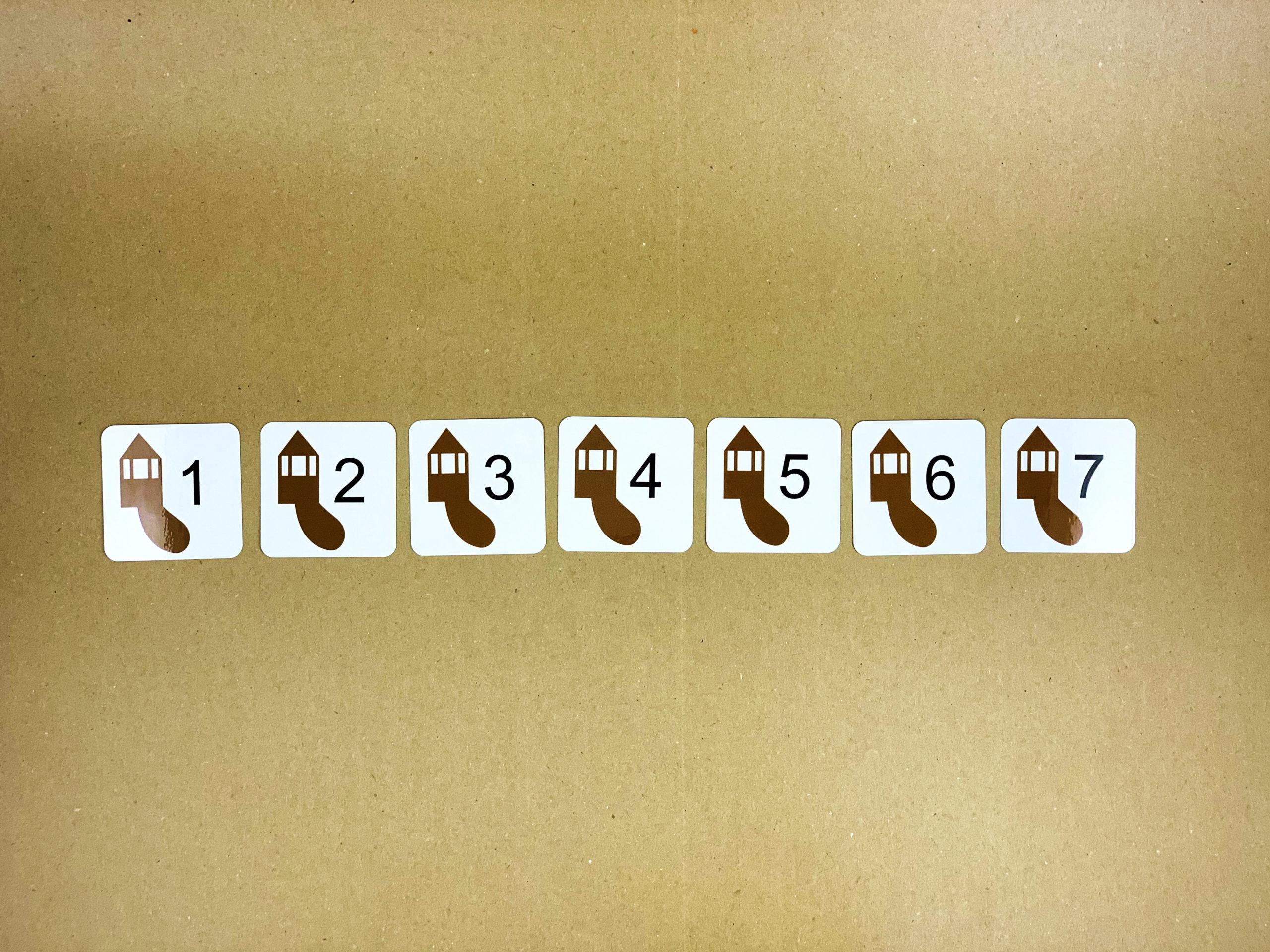 - 7 základných podlhovastých kariet s notou v basovom kľúči v rozsahu od cisis do hisis (karty sú vľavo označené malým basovým kľúčom)