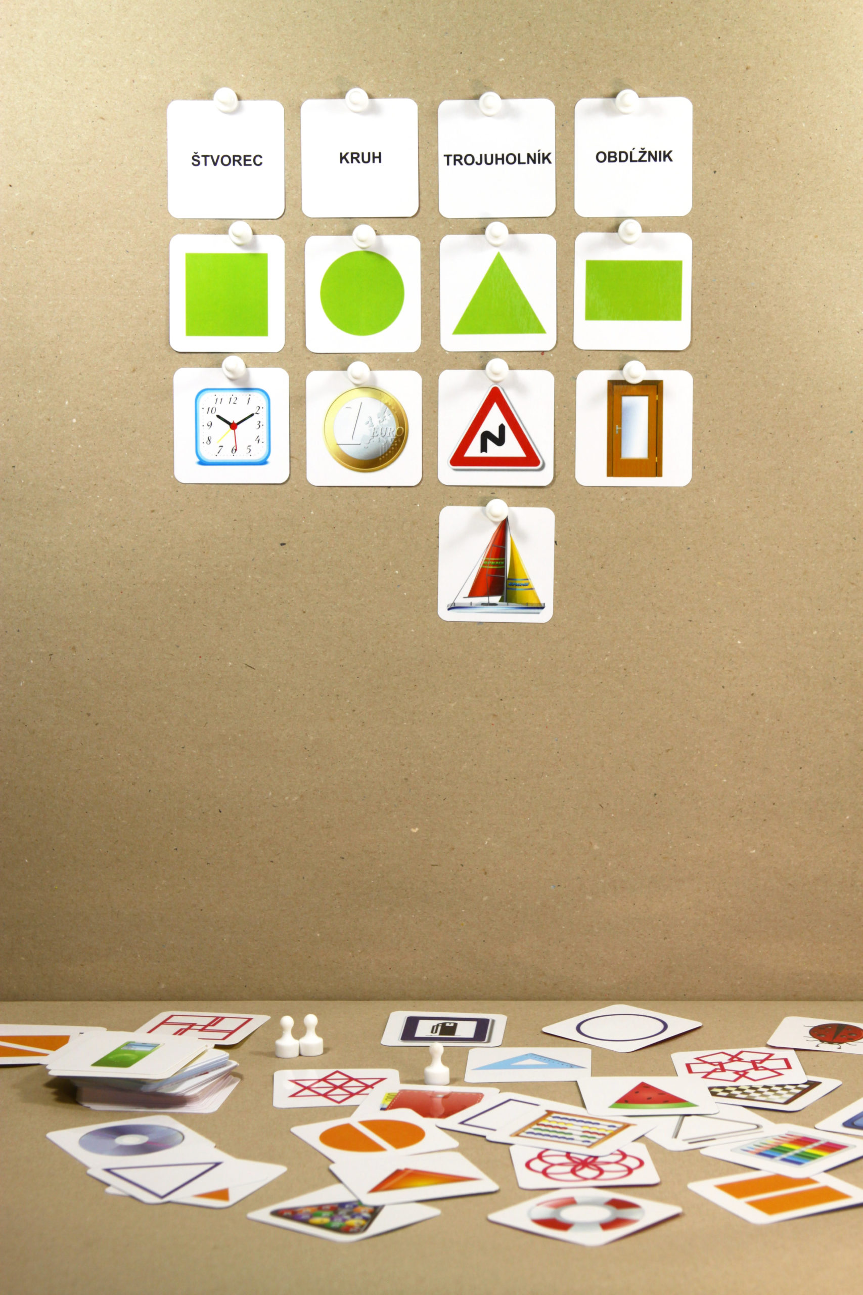 • 54 kariet s obrázkami objektov, ktoré pripomínajú jednotlivé geometrické tvary