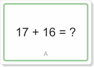 Príklady v tejto skupine majú na rubovej strane kariet znázornené dva odlišné postupy riešenia úlohy. Postupy sú odlíšené na lícovej strane karty písmenom A alebo B.