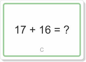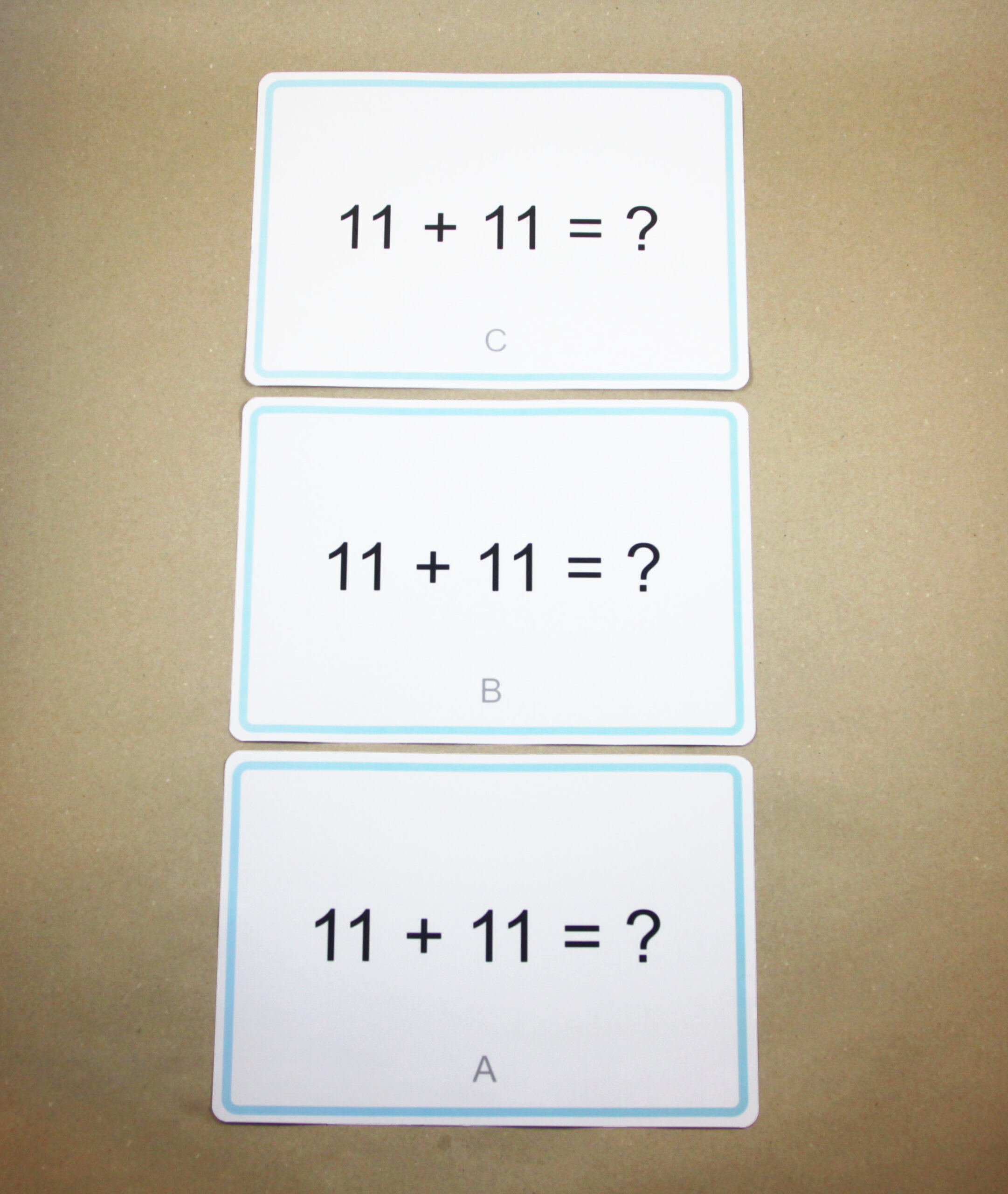 Príklady v tejto skupine majú na rubovej strane kariet znázornené dva odlišné postupy riešenia úlohy. Postupy sú odlíšené na lícovej strane karty písmenom A alebo C.