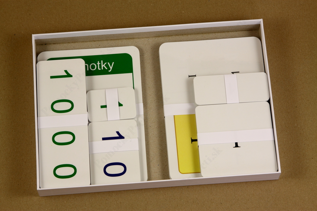 • 3 súpravy kariet s arabskými jednotkami (1 – 9)