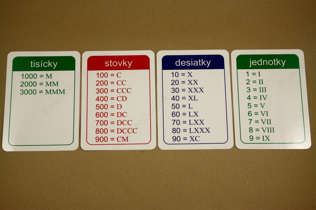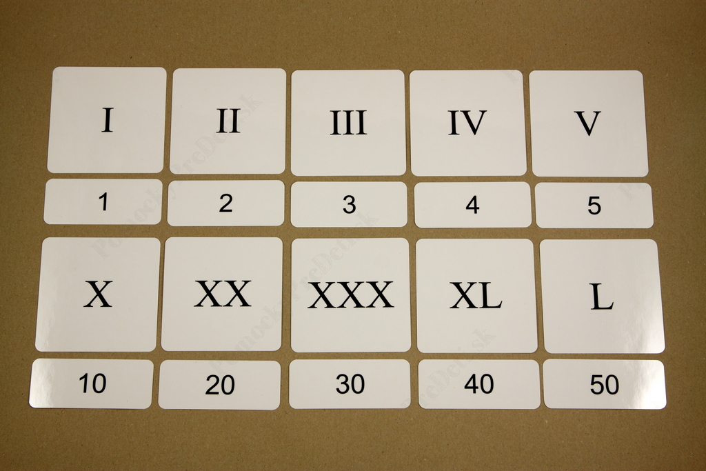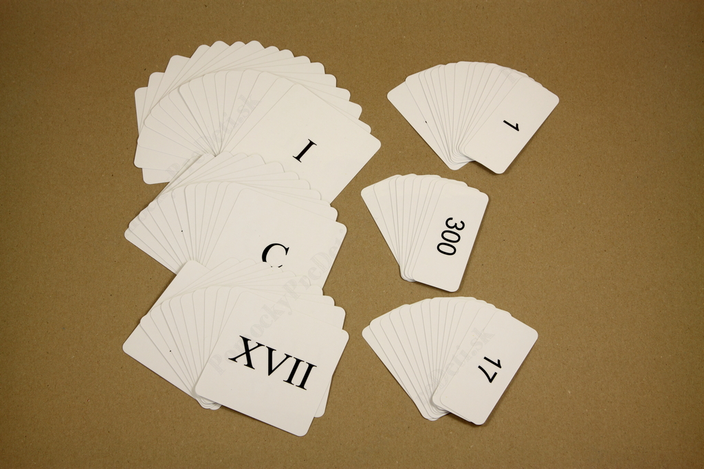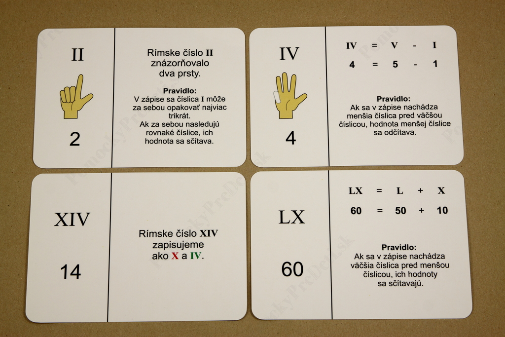 • 39 výukových kariet s pravidlami tvorenia rímskych čísel