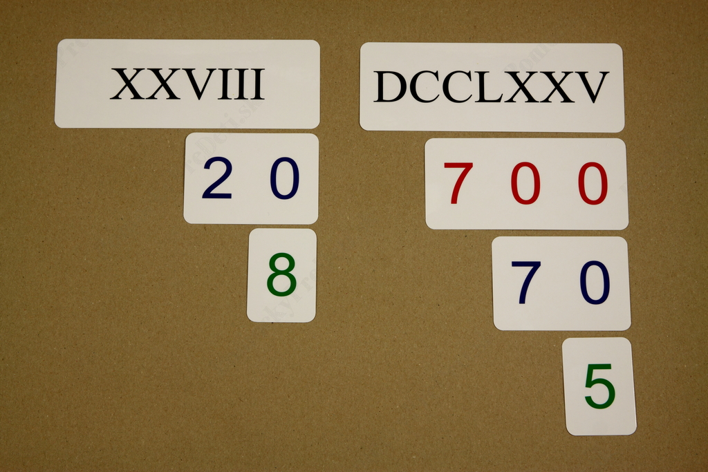• postupný tréning prevodu rímskych čísel na arabské čísla od jednoduchých príkladov až po zložitejšie trojciferné a štvorciferné čísla