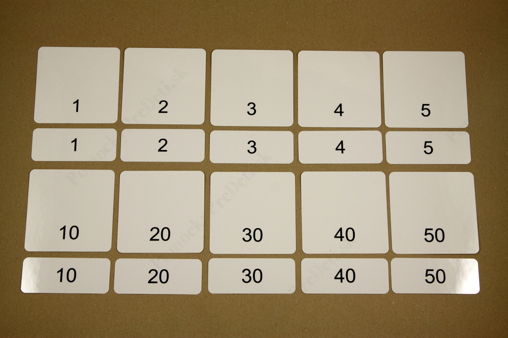 • 3 súpravy kariet s arabskými desiatkami (10 – 90)