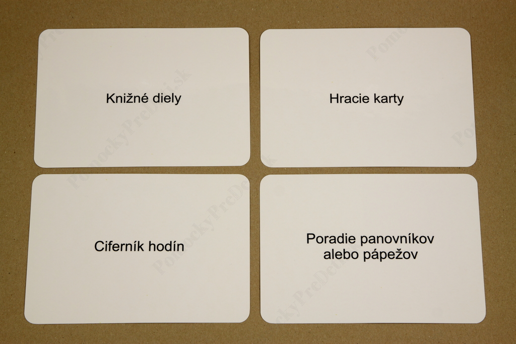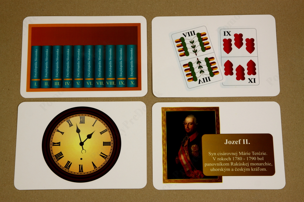 Súčasťou učebnej pomôcky sú aj karty s obrázkami, ktoré obsahujú rôzne príklady použitia rímskych čísel v bežnom živote.