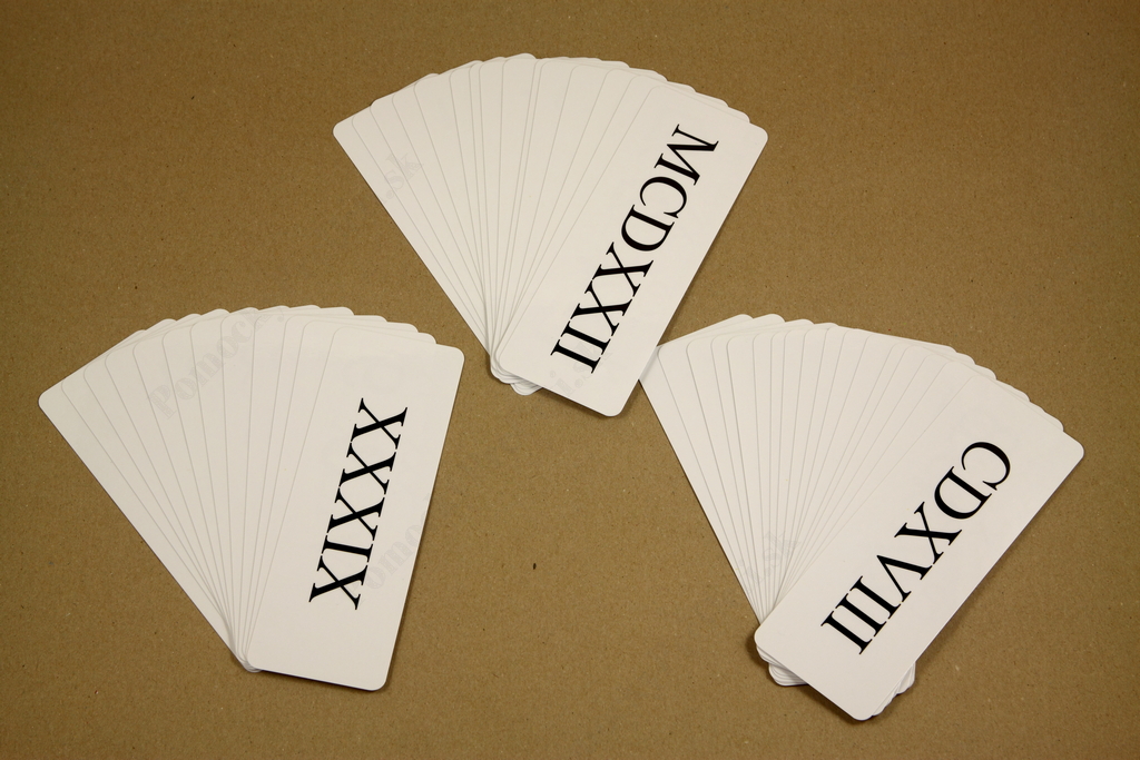 karty s príkladmi použitia rímskych čísel 187 x 132 mm
