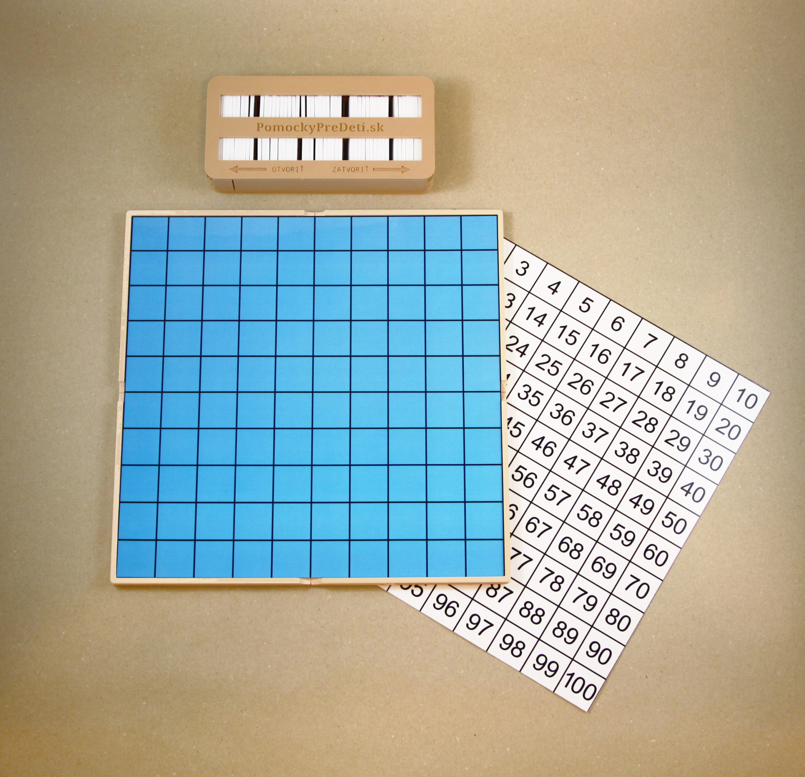 • kontrolnú kartu s číslami 1 až 100 (v usporiadaní 10 x 10 polí)