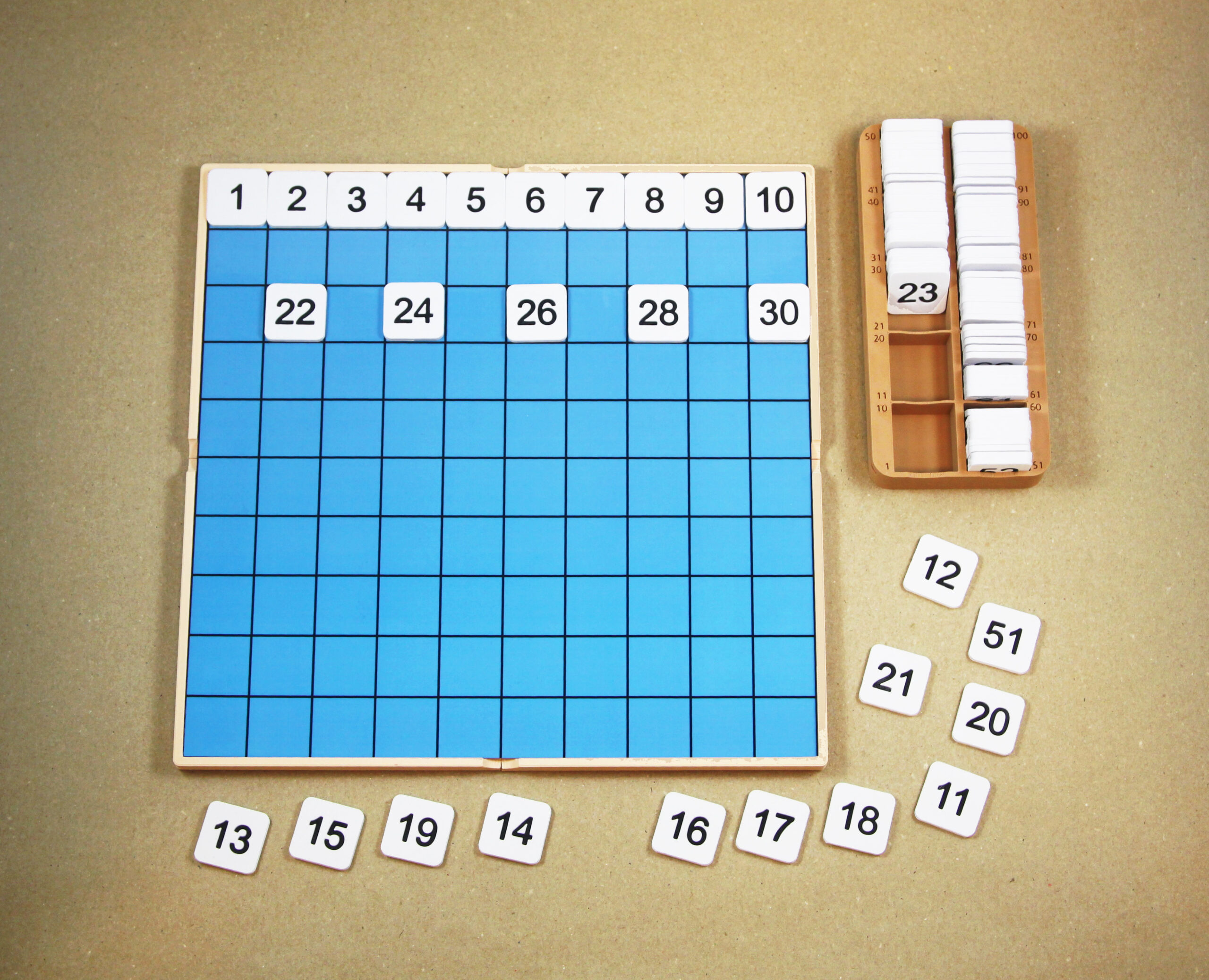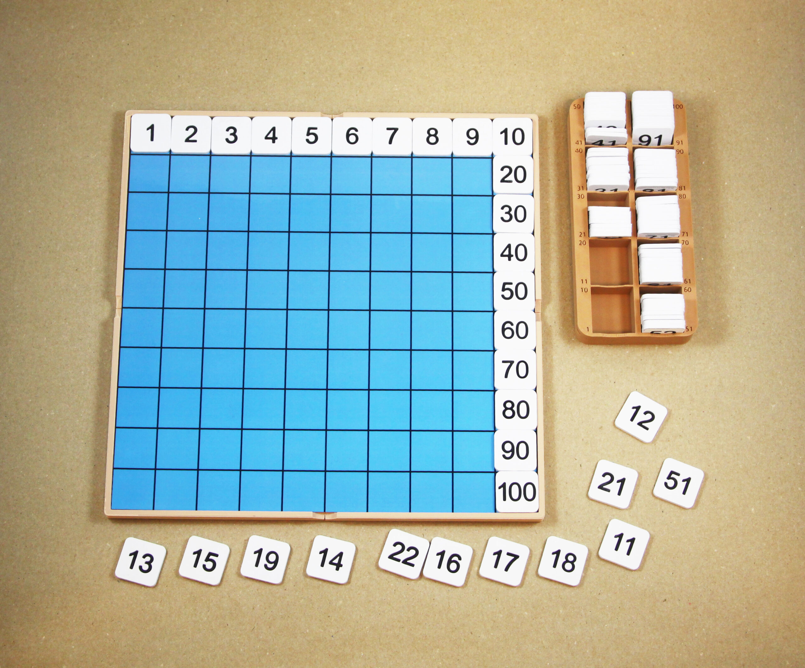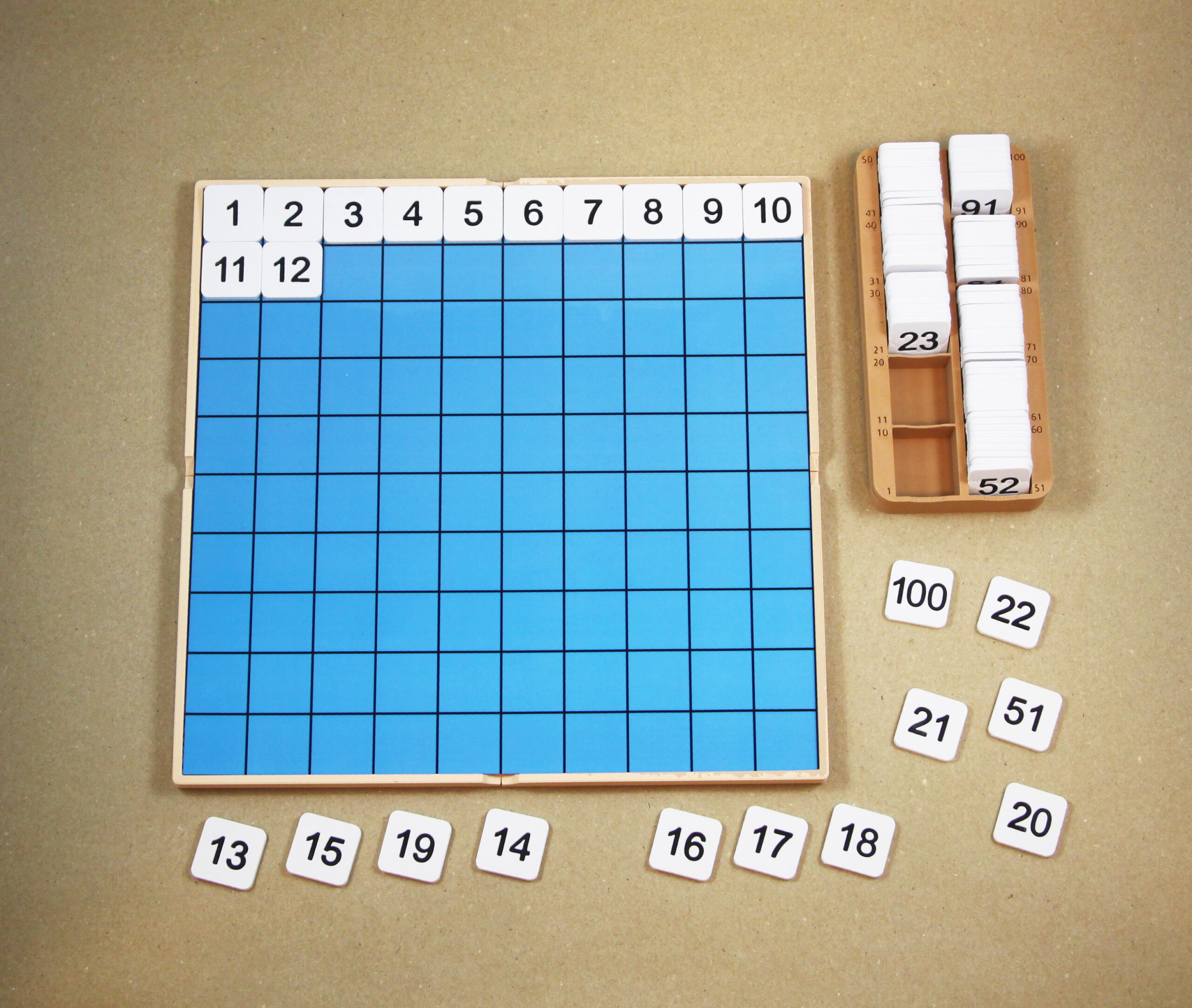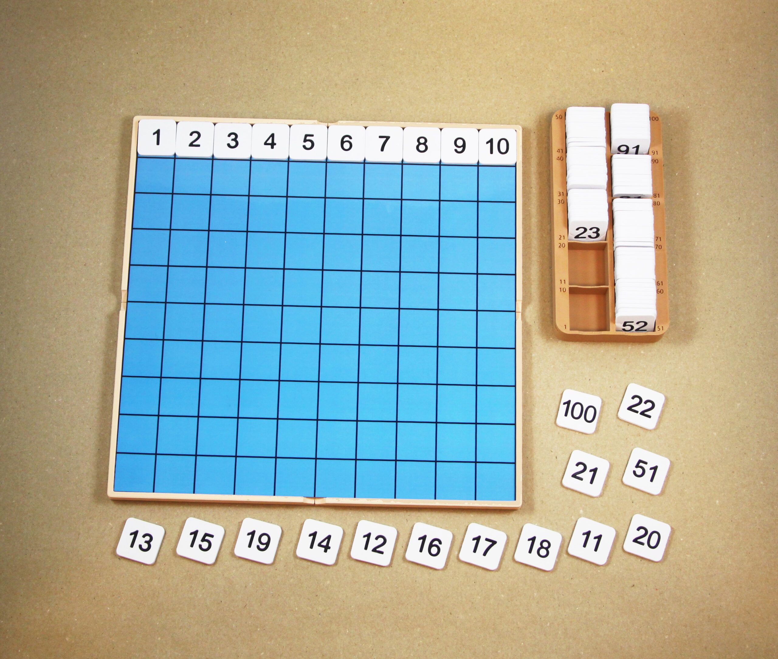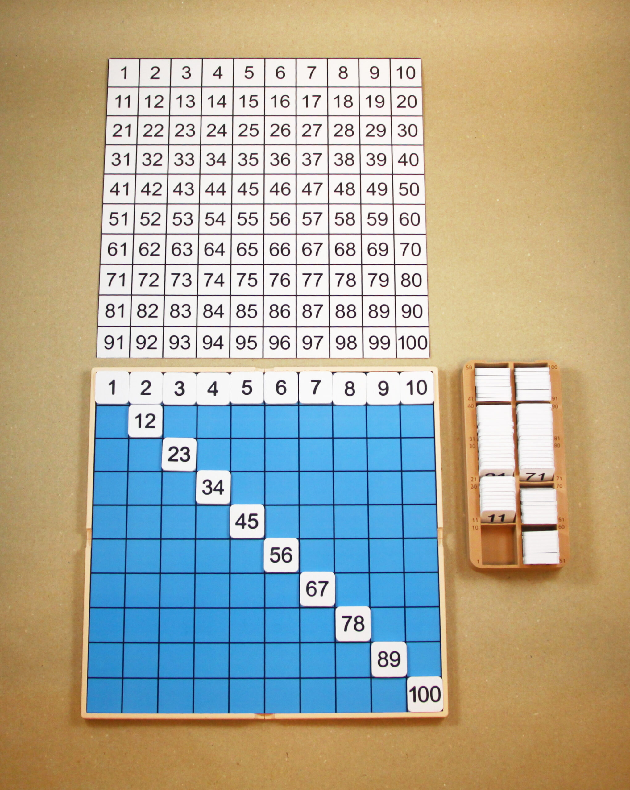 Stovková tabuľka – Základná súprava | Doska, tabuľka, kontrolná karta, štvorce s číslami
