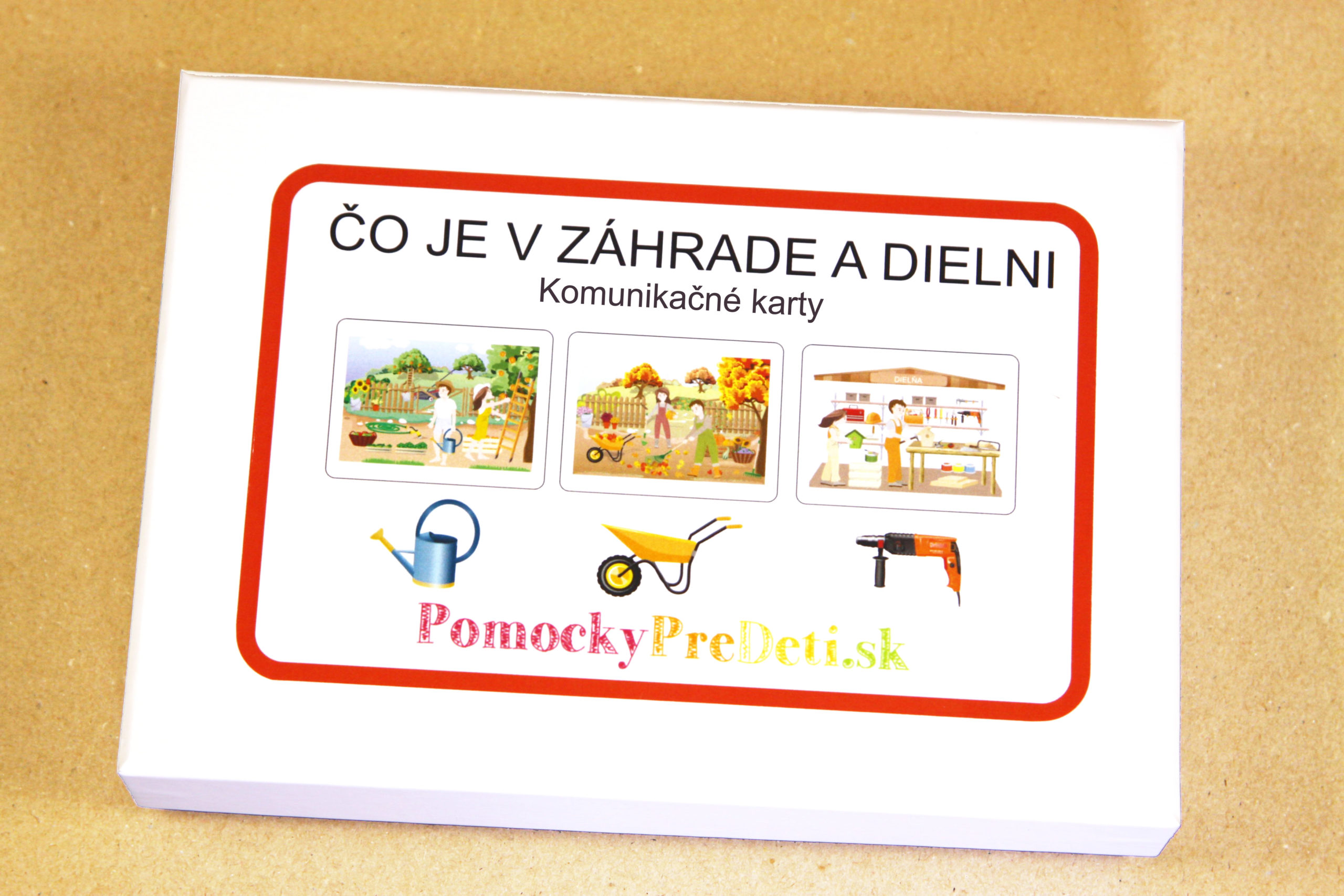 Učebná pomôcka Čo je v záhrade a dielni (komunikačné karty) je určená deťom predškolského a mladšieho školského veku. Pomáha deťom spoznávať rozličné náradie a predmety, ktoré sa používajú pri práci v záhrade alebo pri domácich remeselníckych prácach.