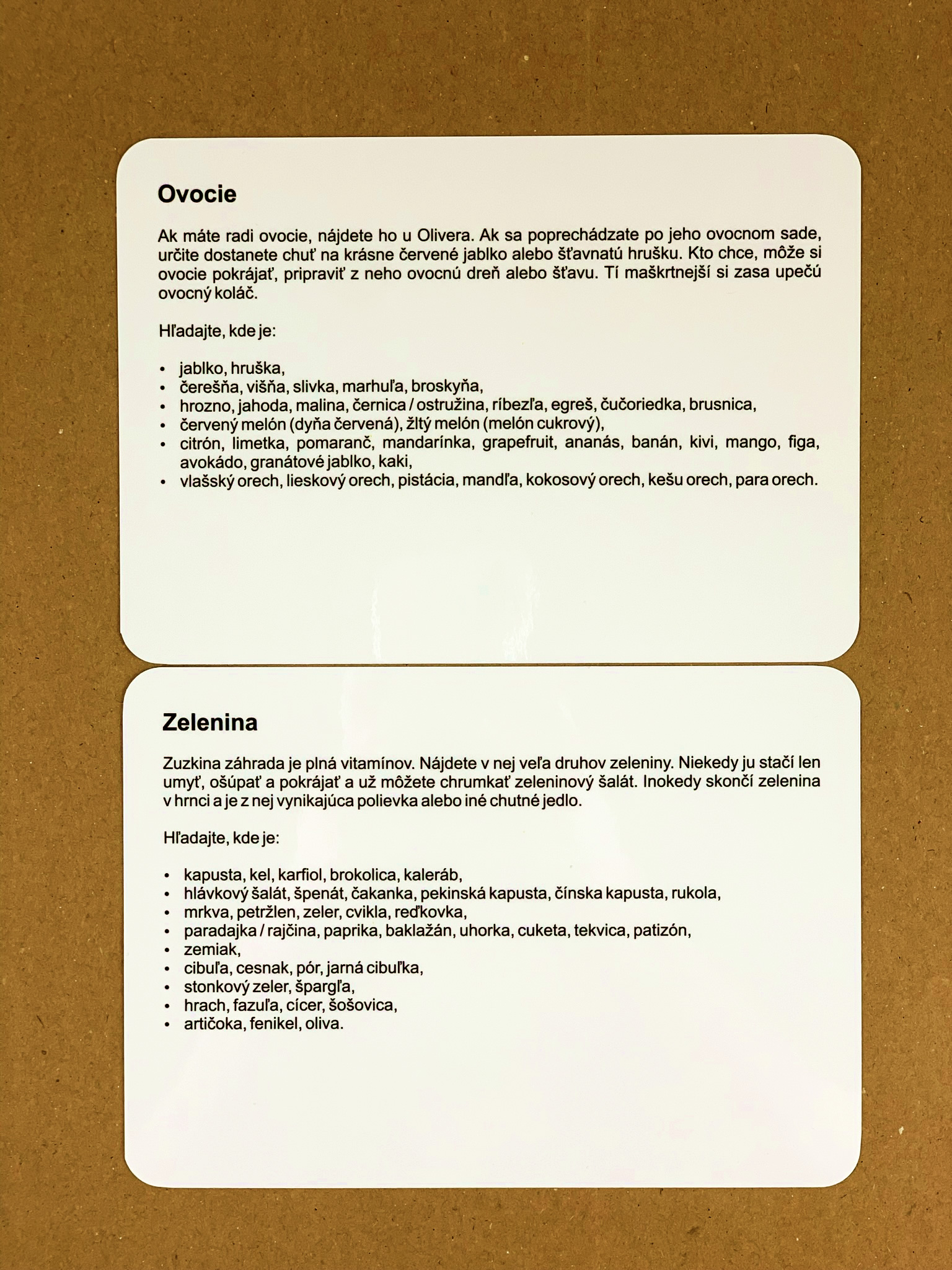 Pri triedení na ovocie a zeleninu sme nezohľadnili prísne botanické hľadisko, ale uprednostnili sme skôr spôsob, akým sa daný druh využíva v gastronómii. Takéto kritérium triedenia sa nám javí ako vhodnejšie pre deti predškolského a mladšieho školského veku. Viac sa o kritériách triedenia dozviete v návode na použitie.