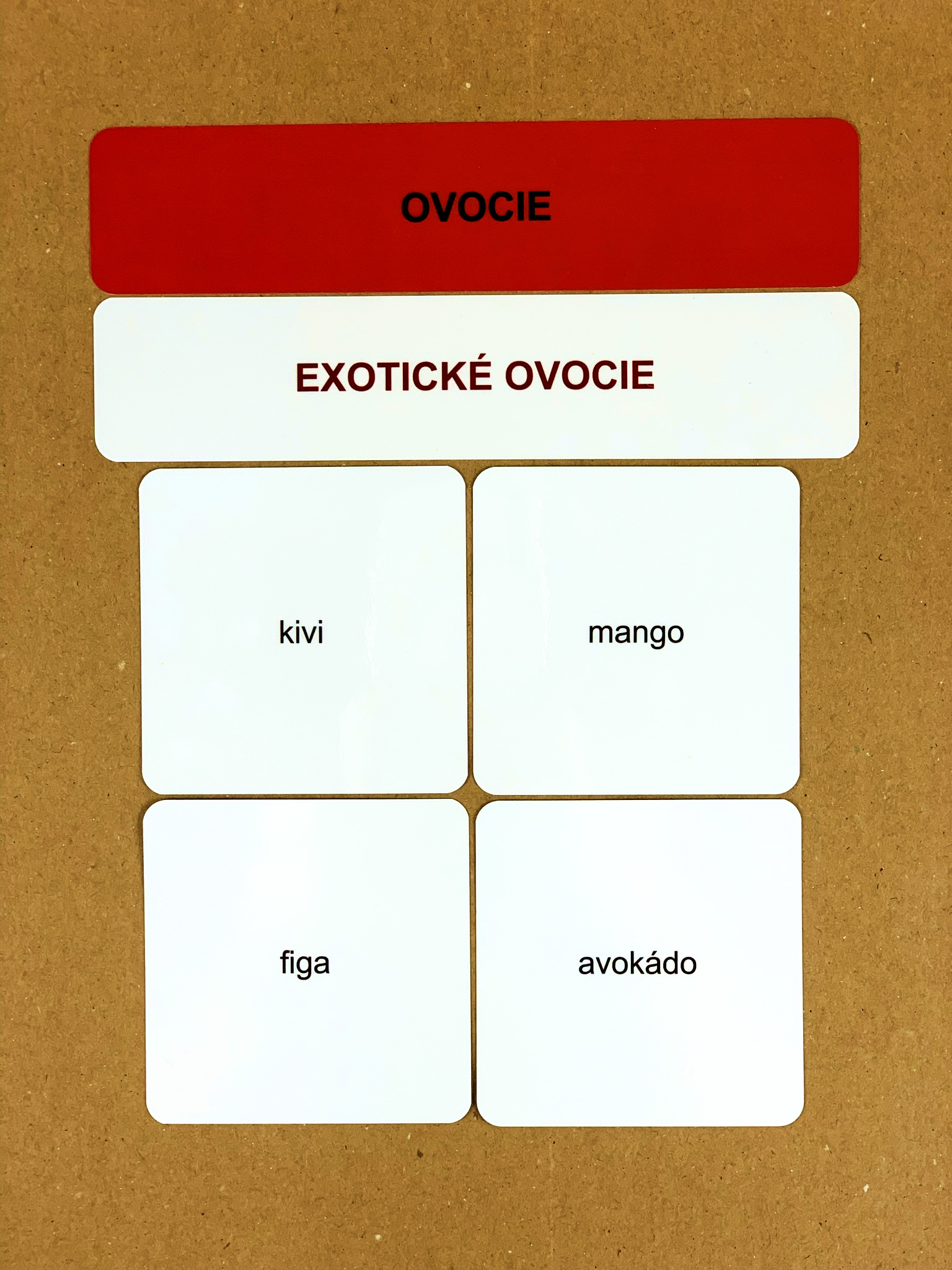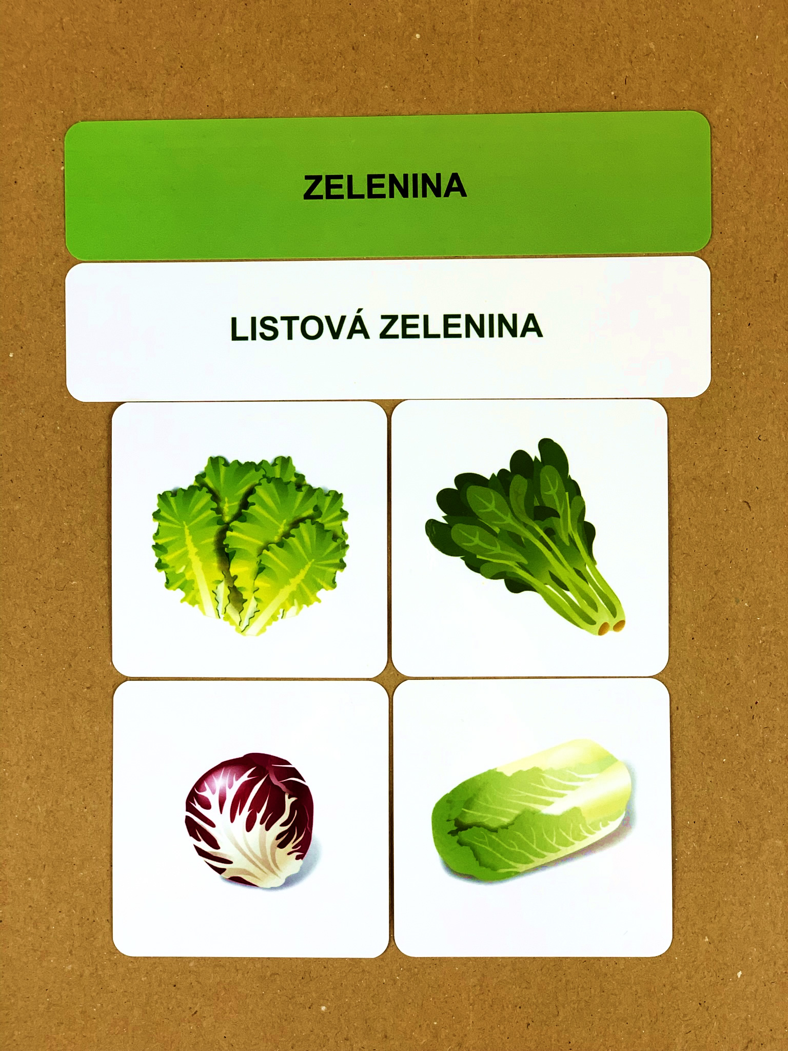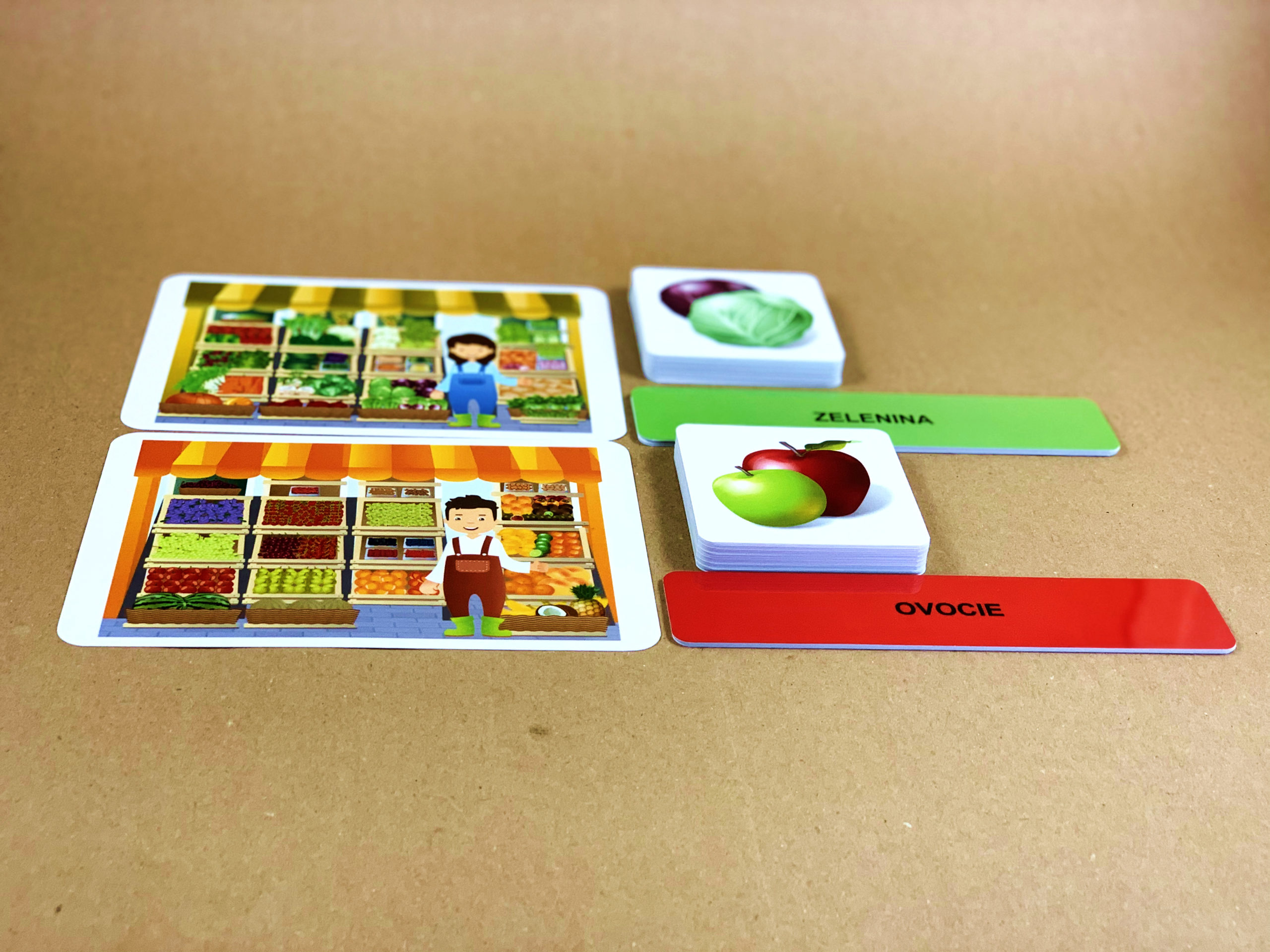 Úlohou detí je prikladať malé obrázkové karty s ovocím resp. zeleninou k správnej skupine. Pri triedení môžete použiť aj textové karty.