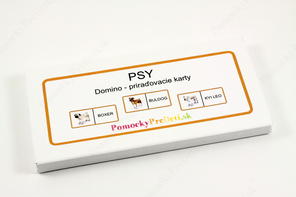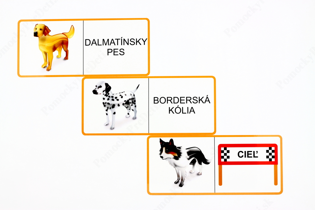 Učebná pomôcka Domino – Psy (priraďovacie karty) je určená deťom predškolského a mladšieho školského veku.