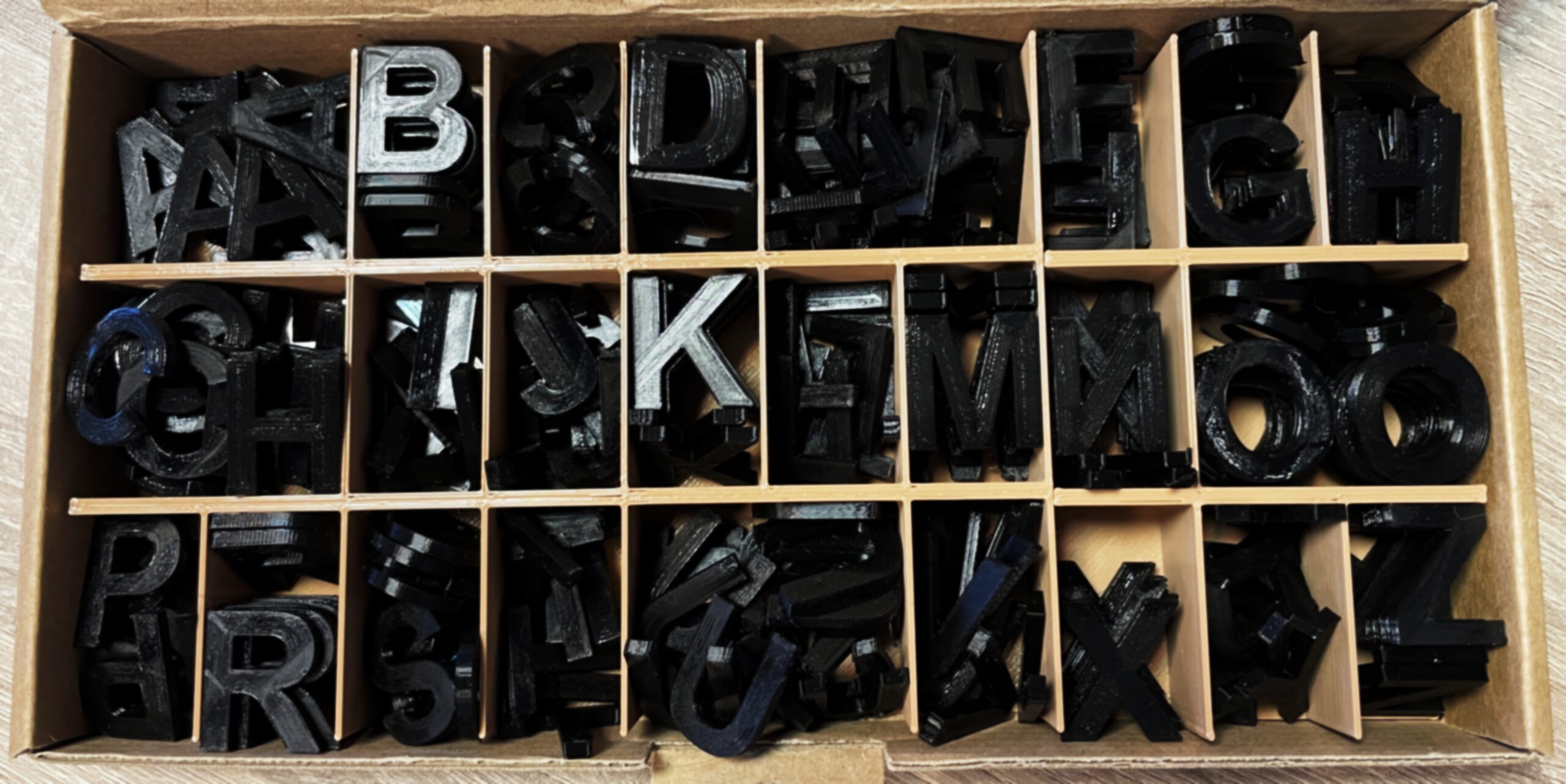 lepenková krabička s triediacou mriežkou (na plastové hlásky)