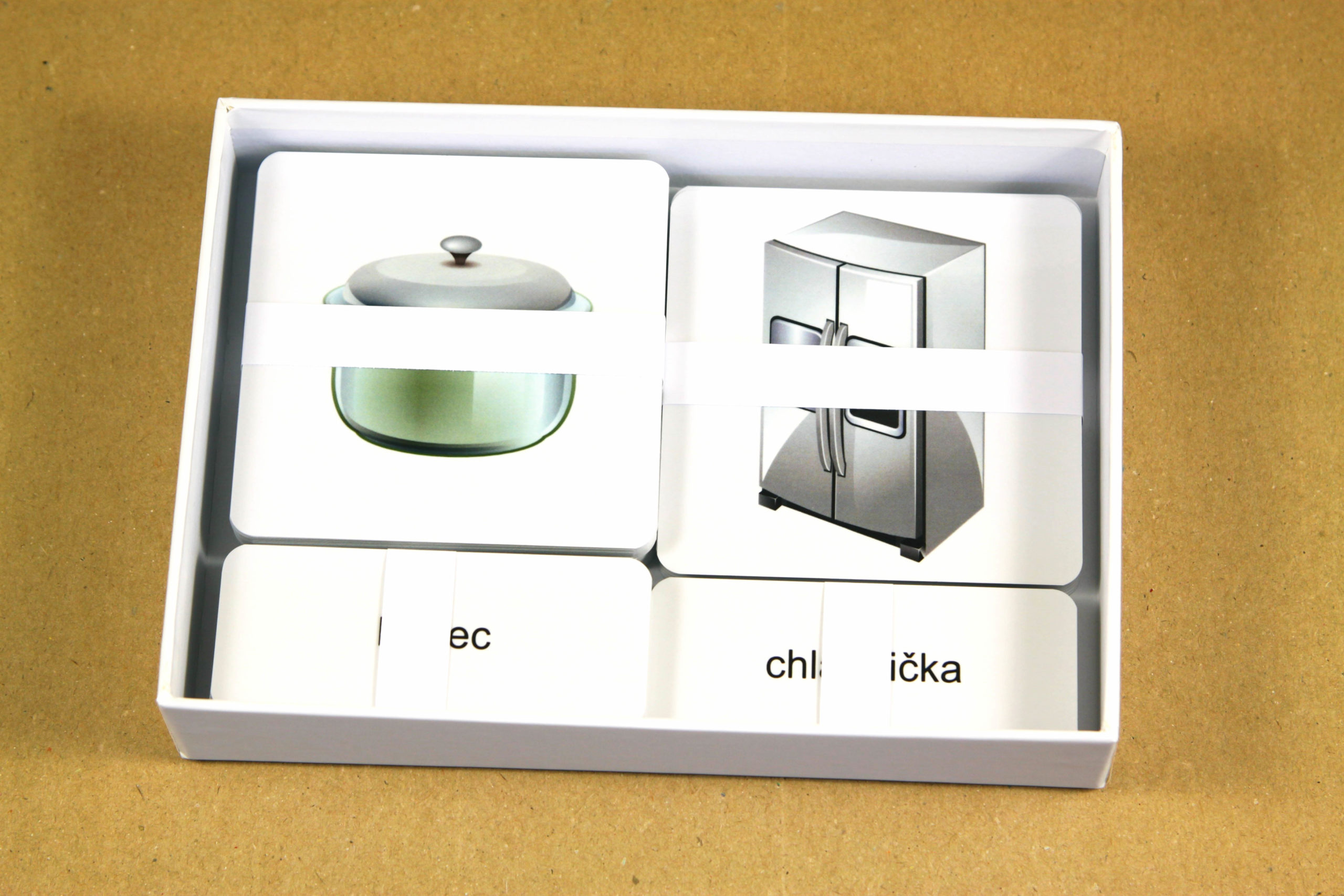 Úlohou detí je prikladať k základným kartám s obrázkom malé karty s textom a priradiť tak slovenský pojem k príslušnému obrázku. Po otočení základnej karty si môžu samy skontrolovať správnosť riešenia. Na rubovej strane základnej obrázkovej karty je slovenský výraz, aj jeho maďarský ekvivalent.