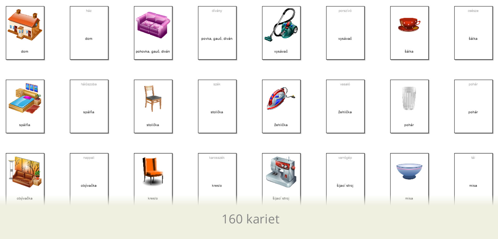 80 základných kariet s obrázkom a textom