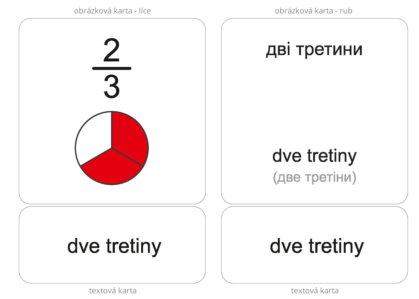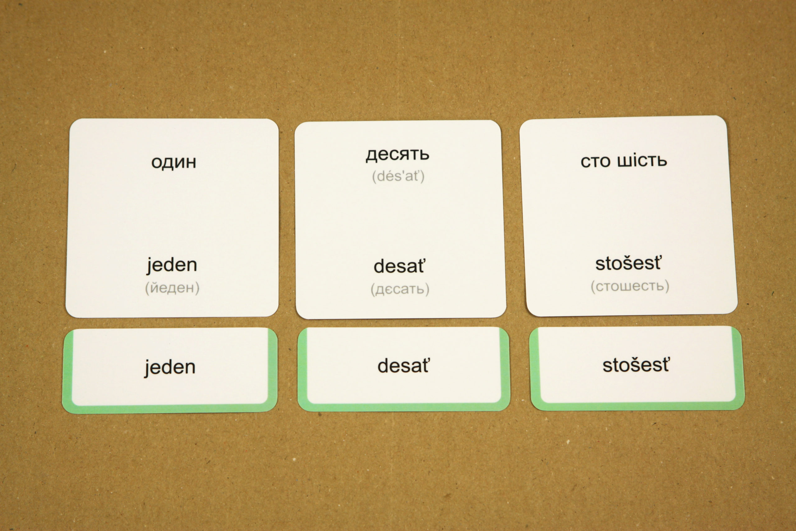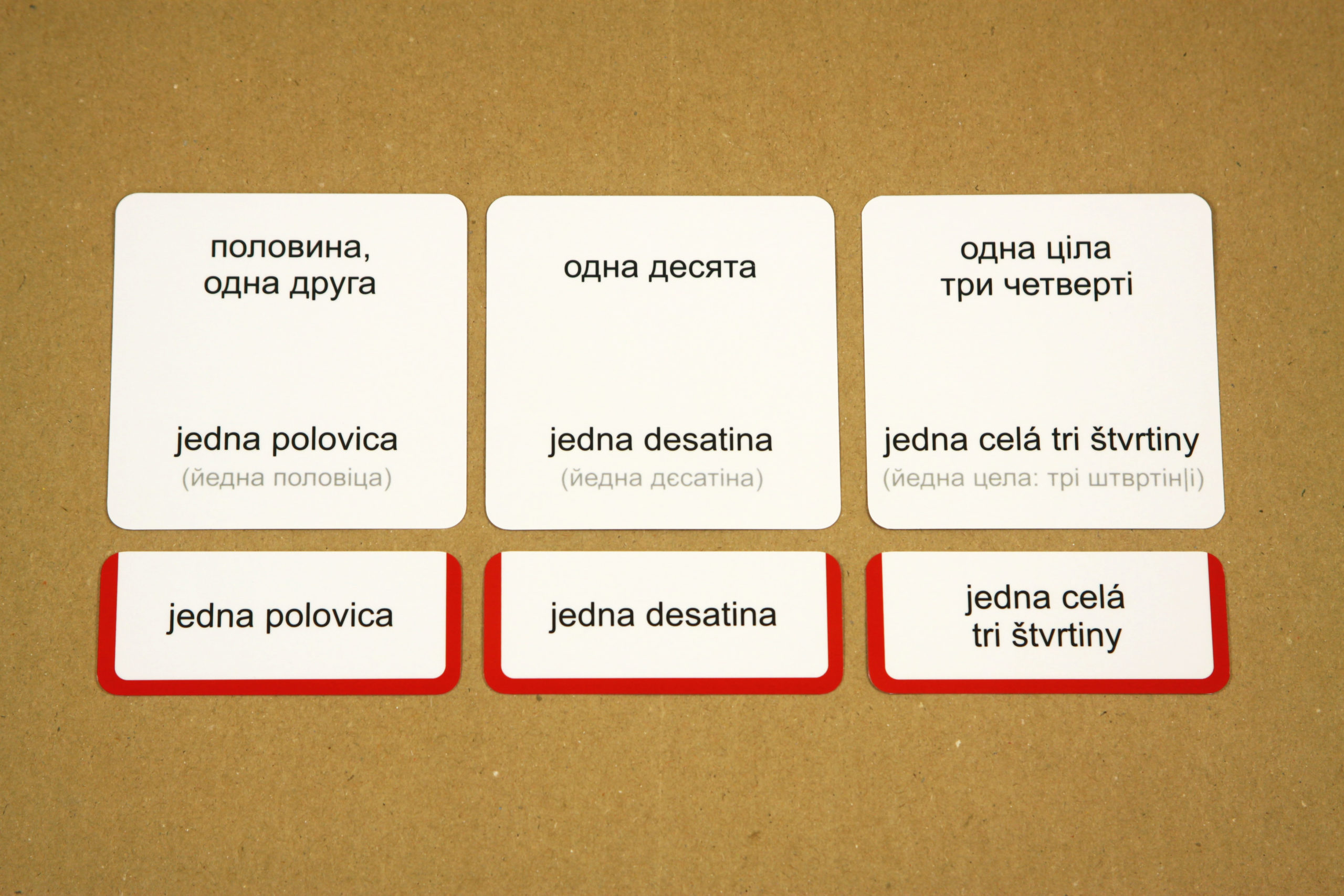 Úlohou detí je prikladať k základným kartám s obrázkom malé karty s textom. Po otočení základnej karty si môžu samy skontrolovať správnosť riešenia. Na rubovej strane základnej karty je slovenský výraz, aj jeho ukrajinský ekvivalent. Pri slovenskom výraze na rube obrázkovej karty je tiež uvedený fonetický prepis do ukrajinskej cyriliky (azbuky), ktorý deťom uľahčí správnu výslovnosť.