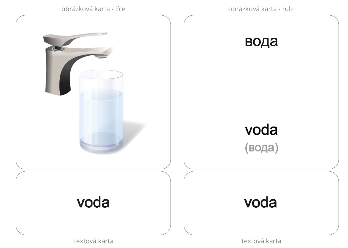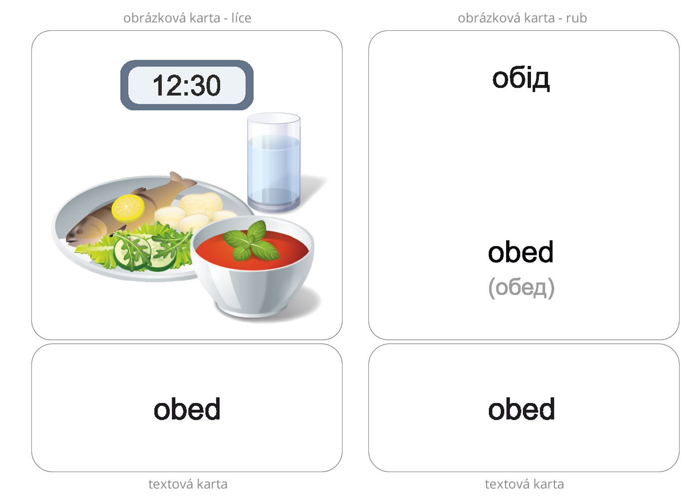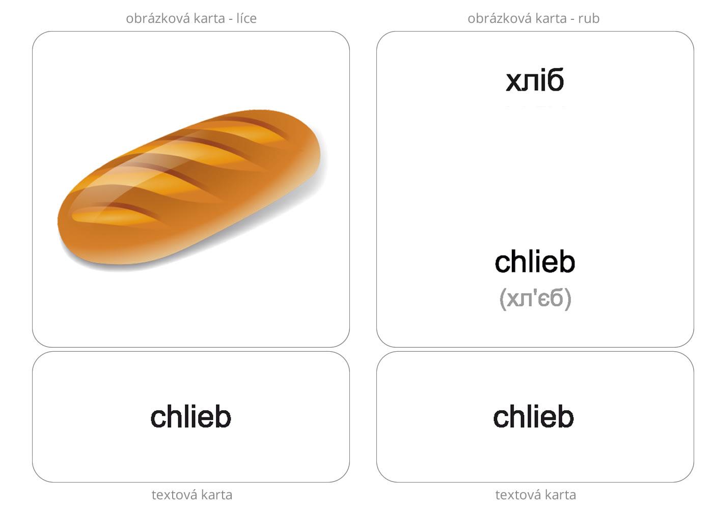 Úlohou detí je prikladať k základným kartám s obrázkom malé karty s textom. Po otočení základnej karty si môžu samy skontrolovať správnosť riešenia. Na rubovej strane základnej karty je slovenský výraz, aj jeho ukrajinský ekvivalent. Pri slovenskom výraze na rube obrázkovej karty je tiež uvedený fonetický prepis do ukrajinskej cyriliky (azbuky), ktorý deťom uľahčí správnu výslovnosť.