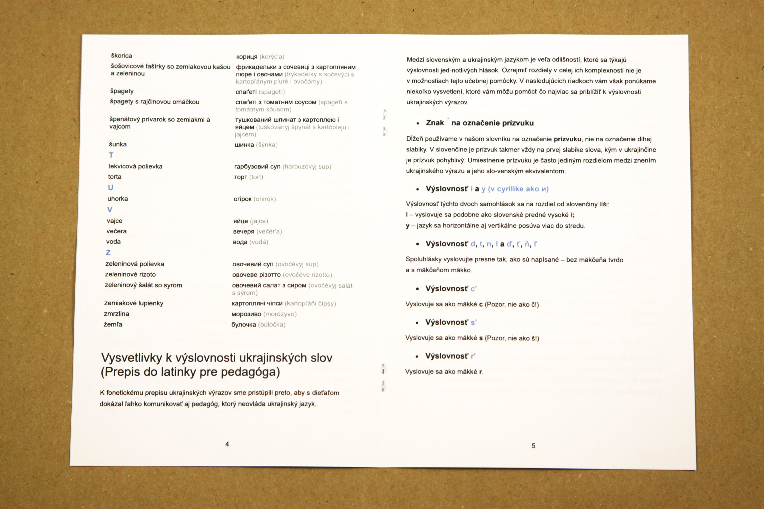 6 malých kariet s textom - slovník na 1 liste A5 – obsahuje aj fonetické prepisy do oboch jazykov navzájom